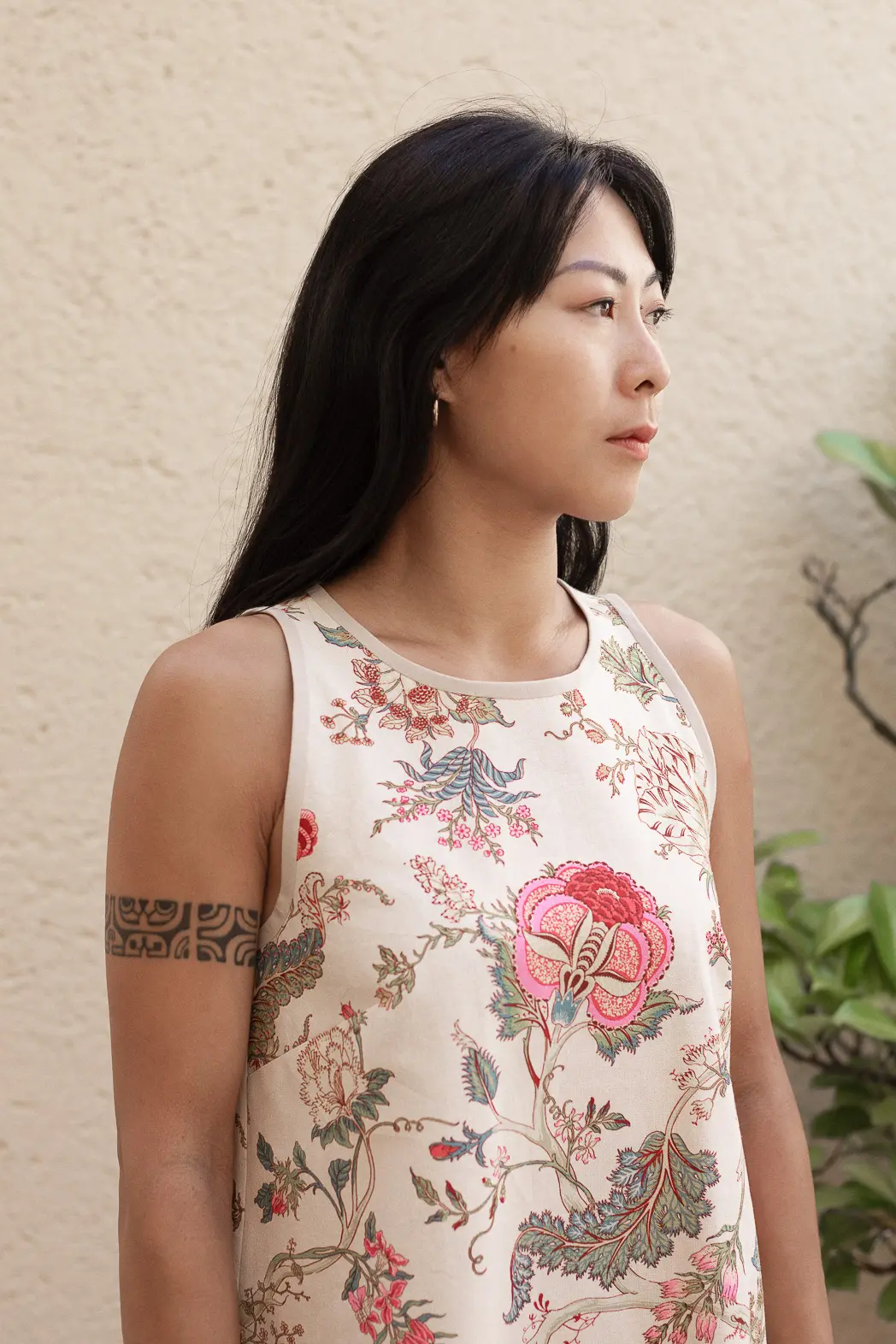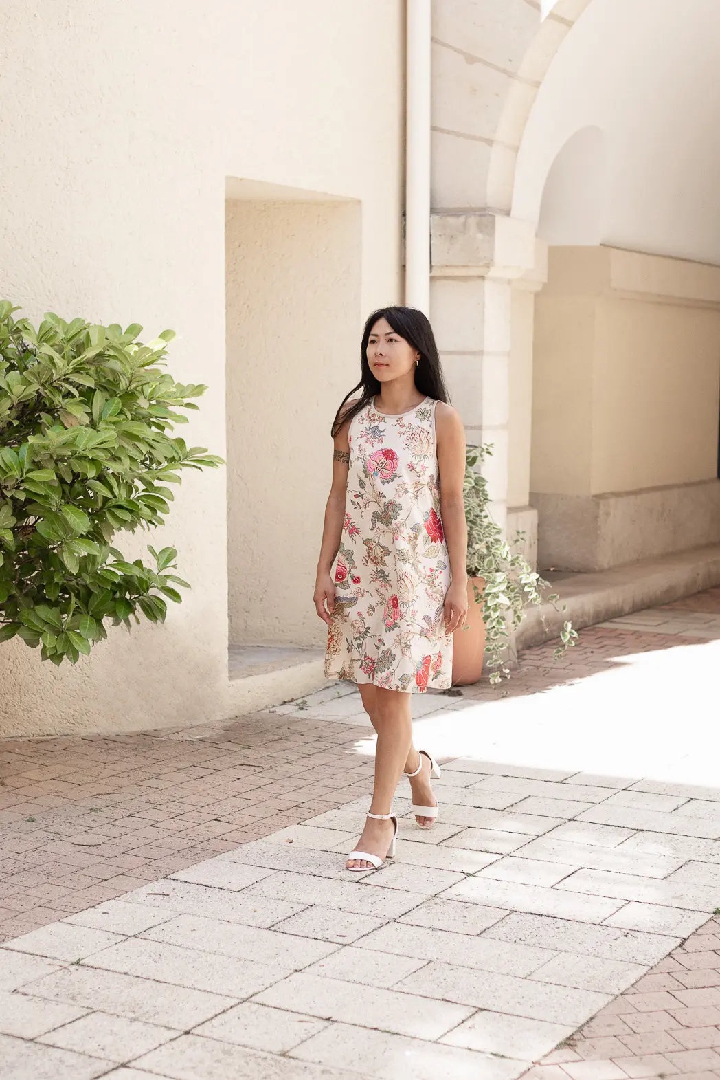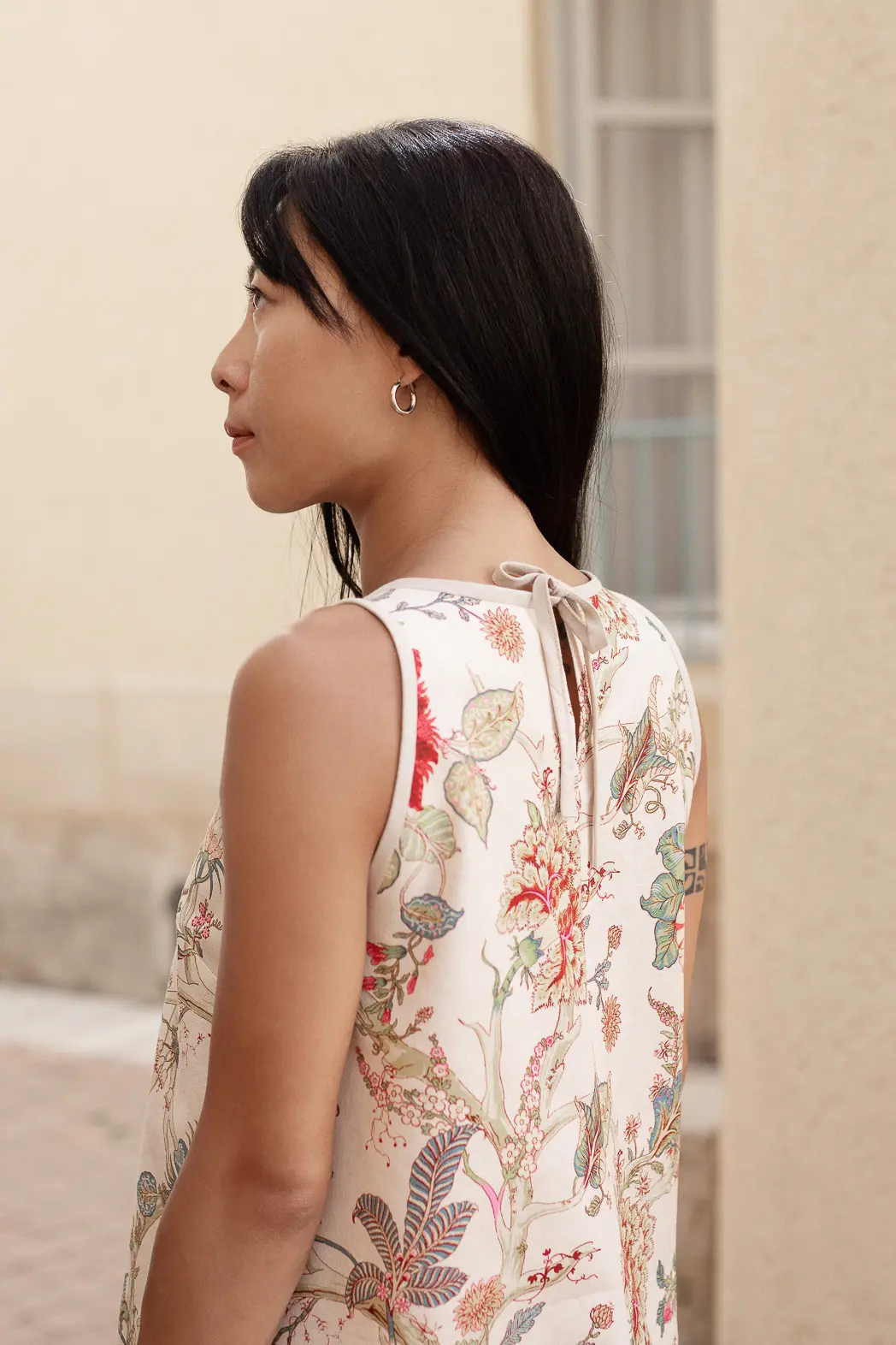 Petite anecdote : la robe Camellia a été cousue dans le tissu qui avait servi de décoration lors du lancement de Flowered Cotten, rien ne se perd tout se transforme !
